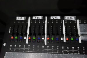PARライトの操作に関しては、DMXコントローラーからの許可された「スライダー」と「BLACK OUT」(一括消灯および点灯)ボタンのみのとしております。